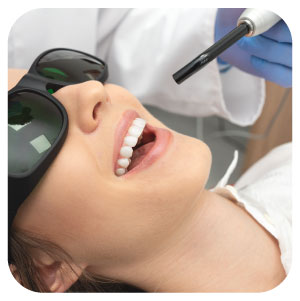 A dental laser is used to precisely and accurately access and remove the inflamed gum tissue from around the root of the tooth during laser periodontal therapy.